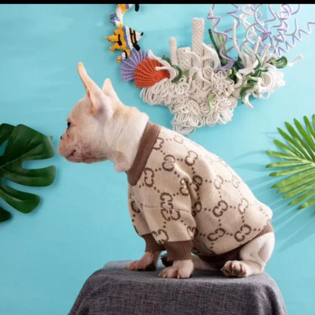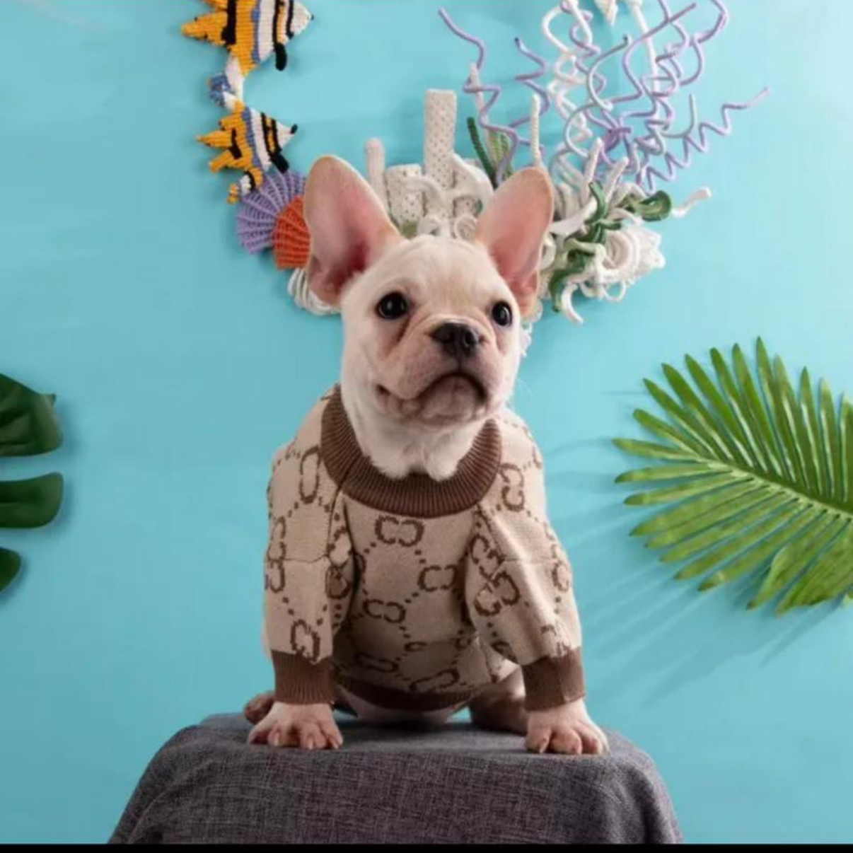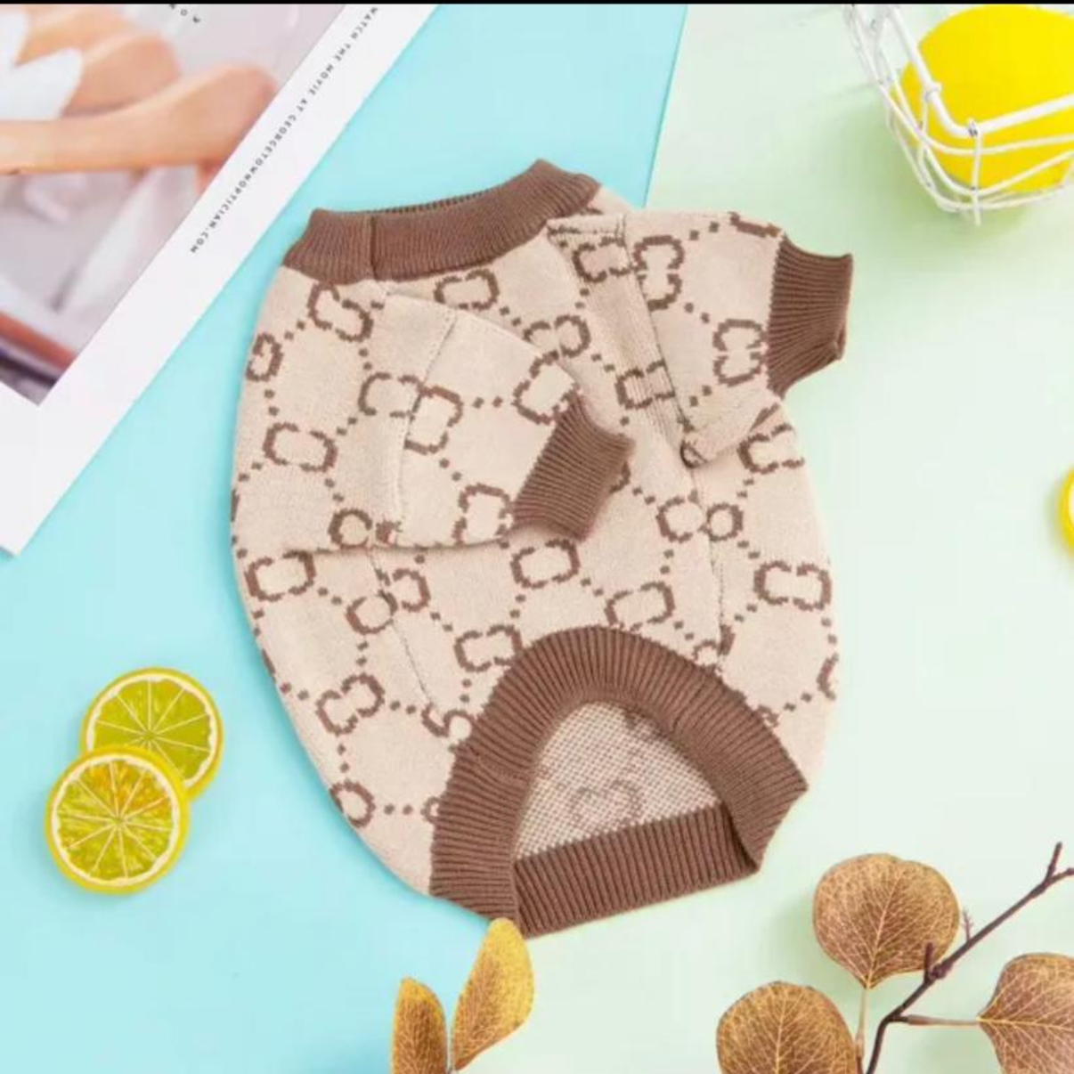 Der perfekte Mix aus Komfort und Stil – dieser hochwertige Strickpullover sorgt dafür, dass dein Hund nicht nur warm bleibt, sondern dabei auch unglaublich elegant aussieht.Das weiche, atmungsaktive Material schmiegt sich angenehm an das Fell an, während das klassische Designer-inspirierte Muster für einen besonders edlen Look sorgt. Ideal für Spaziergänge an kühleren Tagen oder für einen modischen Auftritt zu Hause
