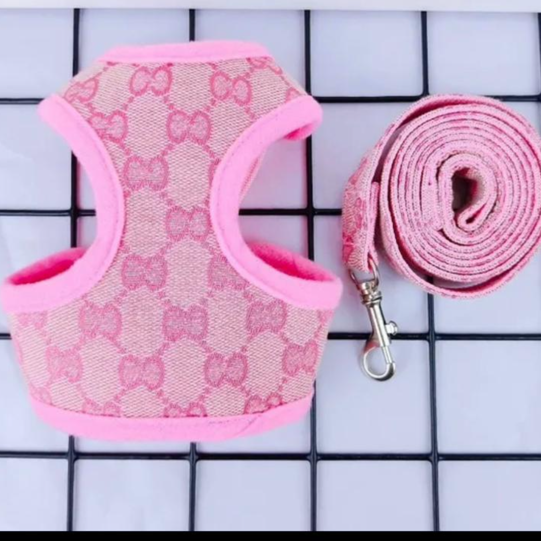 Mit seinem Designer-inspirierten Muster und der hochwertigen Verarbeitung ist es das perfekte Accessoire für modebewusste Vierbeiner. Das Geschirr sorgt für optimalen Halt und angenehmen Tragekomfort, während die passende Leine den Look perfekt abrundet.